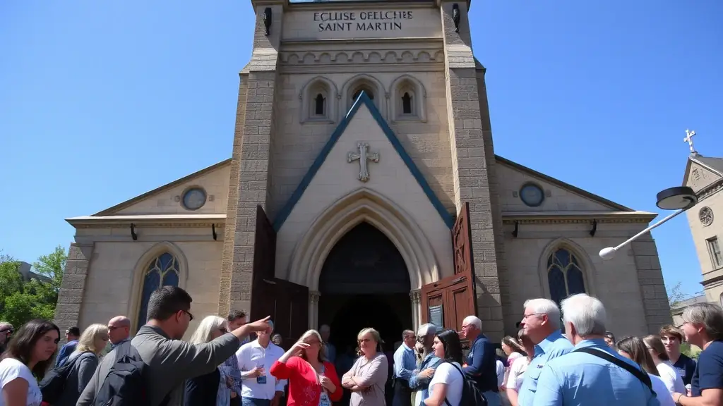 La visite à pied a commencé à la Mairie, un bâtiment chargé d’histoire et d’importance civique. De là, le groupe s’est rendu à l’église Saint-Martin, un exemple étonnant d’architecture romane. Vincent Savoie a partagé des détails fascinants sur la construction de l’église, son importance historique et les éléments artistiques qui en font un trésor local. La visite comprenait également une visite à l’ancien lavoir, un lieu de lavage communal qui servait autrefois de centre social pour le village.